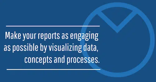 C’est pourquoi il est essentiel que vos rapports soient aussi attrayants que possible . Pour ce faire, créez des images de vos données, processus et concepts, afin de les rendre plus faciles à comprendre et plus amusants.