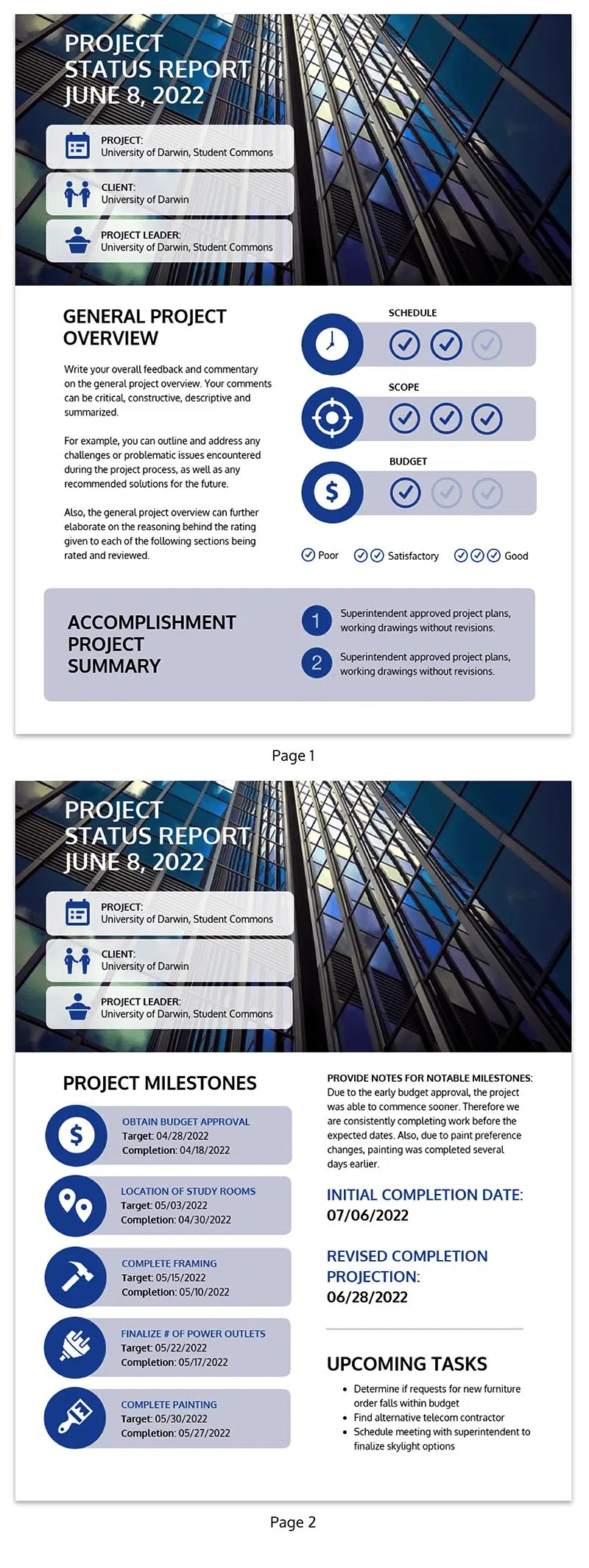 Le modèle de rapport d’avancement du projet ci-dessous présente les informations essentielles dans un format facile à comprendre.