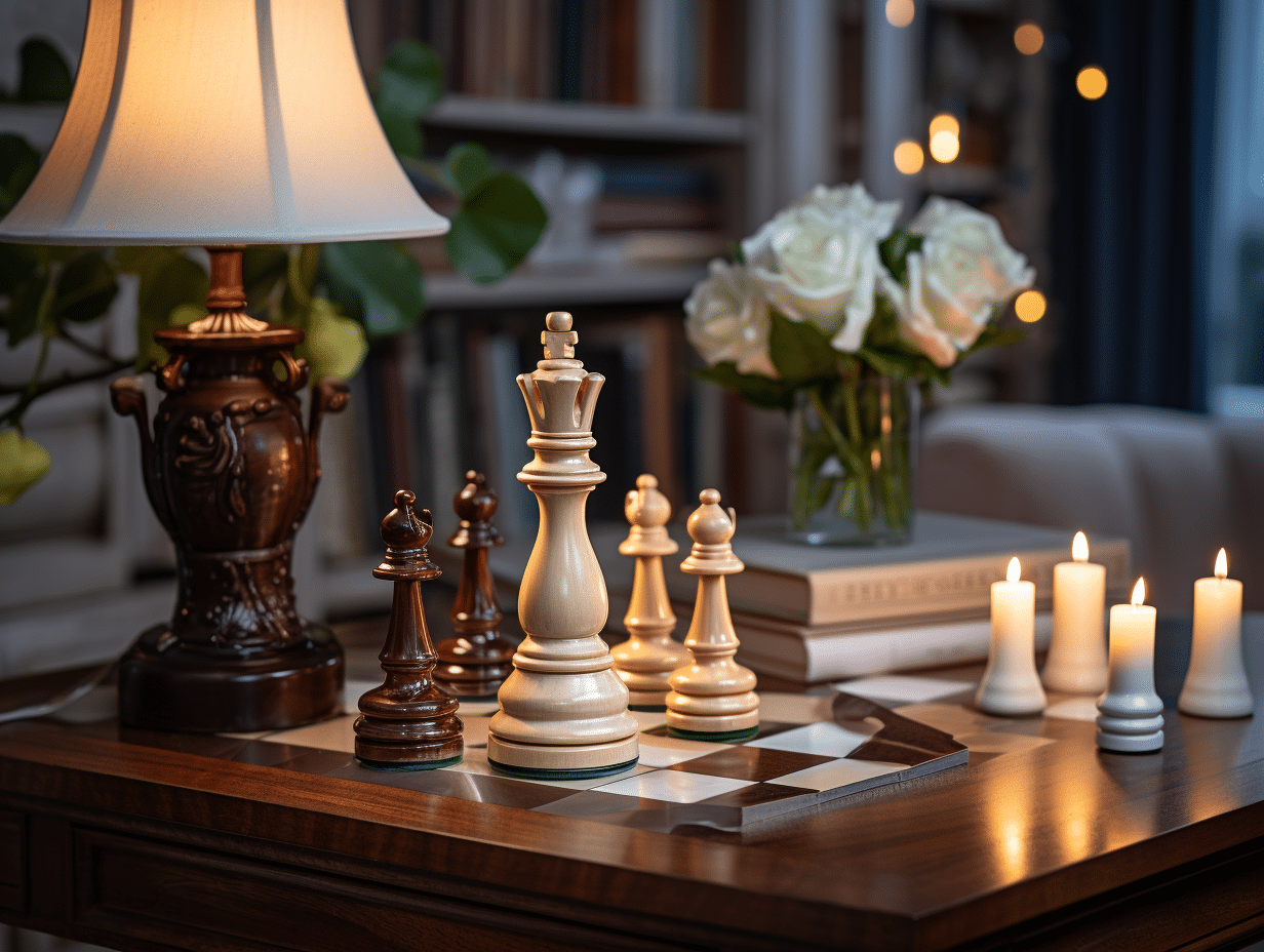 L’harmonie entre votre coin d’échecs et le reste de votre intérieur est aussi à considérer. Effectivement, la décoration doit encourager la réflexion et la quiétude. Des couleurs apaisantes sur les murs, des étagères pour organiser vos livres et ressources éducatives, et un éclairage modulable selon le moment de la journée, créent une ambiance propice à l’étude des stratégies échiquéennes, des phases du jeu d’échecs à la tactique.